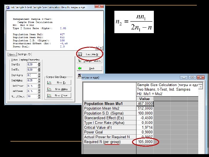 Расчёт размера выборки для заданных различий и мощности