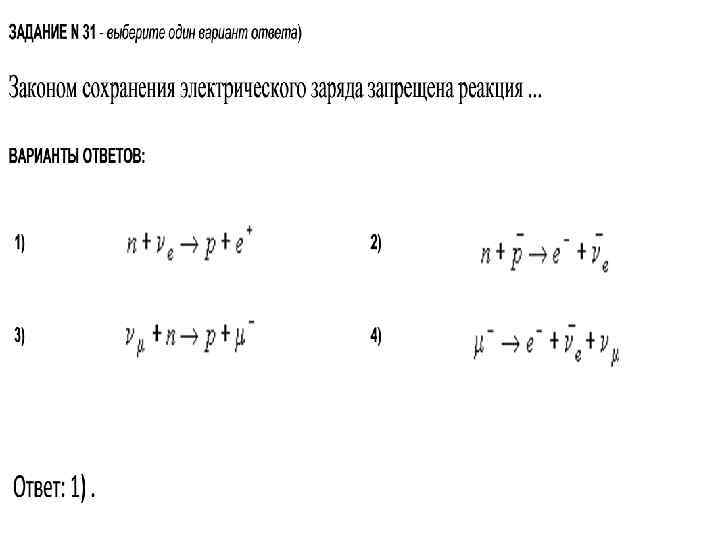 Задание 9 Второй продукт ядерной реакции 1) Протон; 2) электрон; 3) позитрон; 4) нейтрон.
