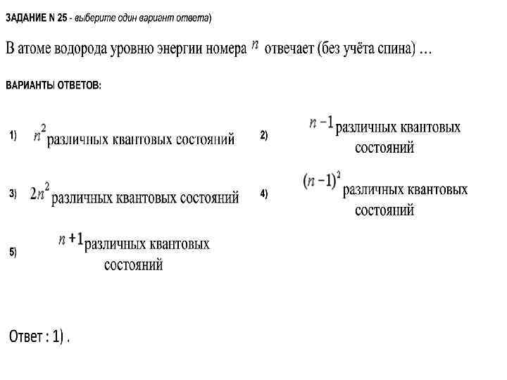 Задание 4 Сколько электронов атома может находится в квантовом состоянии, характеризуемом одинаковым набором квантовых чисел 1) Один; 2) два; 4) тридцать два. 3) восемь.