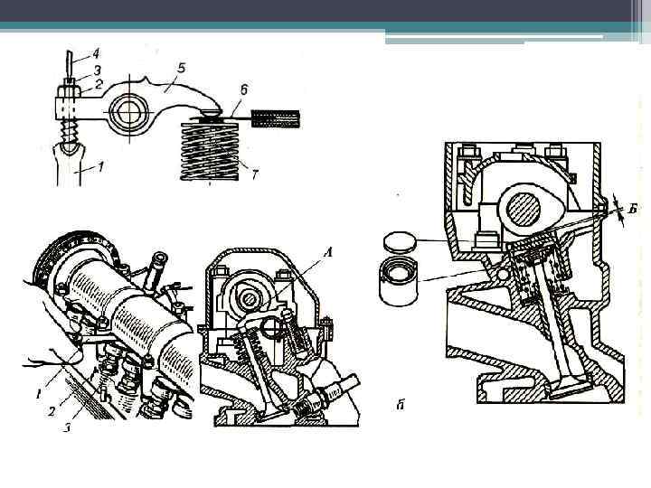Регулировка зазоров ГРМ и декомпрессионного механизмов , двигателя Д-160 Б Зазор В = 0, 3 мм. Зазор А = 0, 45. . . 1 мм.