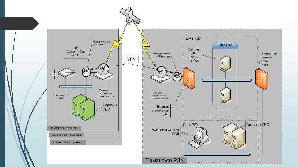 Системы сбора и передачи информации (ССПИ) Система передачи данных (СПД) – система, предназначенная для передачи данных как внутри различных систем инфраструктуры организации, так и между ними, а также с внешними системами: • сетевой коммутатор – устройство для соединения нескольких узлов компьютерной сети в пределах одного или нескольких сегментов сети; • маршрутизатор (роутер) - специализированный сетевой компьютер, имеющий два или более сетевых интерфейсов и пересылающий пакеты данных между различными сегментами сети; • межсетевой экран (файервол, брандмауэр) – программный или программно-аппаратный элемент компьютерной сети, осуществляющий контроль и фильтрацию проходящего через него сетевого трафика в соответствии с заданными правилами; • шлюз и мост - аппаратный маршрутизатор или программное обеспечение для сопряжения компьютерных сетей, использующих разные протоколы (например, ТСР/IP – глобальный и Modbus RTU - локальный); • мультиплексор данных - устройство или программа, позволяющая передавать по одной коммуникационной линии или каналу передачи одновременно несколько различных потоков данных; • конвертер физической среды или протоколов передачи – программно-аппаратные средства, преобразующие соответственно среду или протокол в новую форму или систему координат; • точки доступа - беспроводная базовая станция, предназначенная для обеспечения беспроводного доступа к уже существующей сети (беспроводной или проводной) или создания новой беспроводной сети; • клиентское оборудование (оконечное оборудование данных) - в сетевых технологиях - устройство: - генерирующее или принимающее данные в соответствии с принятыми протоколами; - функционирующее под управлением прикладного процесса.