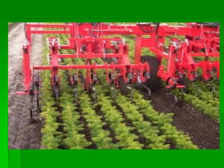 Посев § В лесных питомниках применяют такие виды посева – безгрядковый, строчный и ленточный. § Грядковый посев применяют в районах с избыточным увлажнением или с близким залеганием грунтовых вод. § Строчный посев с шириной бороздки 2… 5 см называют узкострочным, а при бороздках шириной 6… 15 см – широкострочным. § Ленточный посев состоит из двух и более строчек и характерен тем, что расстояние между строчками меньше, чем расстояние между лентами. Семена хвойных пород высевают с ленточной, 5 - или 6 строчной схемами с шириной строчки 2… 5 см, а лиственные – по 3 - или 4 - строчной схемам с шириной строчки 8… 15 см. § Практический опыт показывает, что качественные сеянцы получают при посеве отсортированными и более крупными семенами, при точечном высеве и внесении гранулированного суперфосфата в посевные строчки. Кроме того, для получения дружных всходов целесообразно выполнять мульчирование посевов или укрывать их полиэтиленовой пленкой.