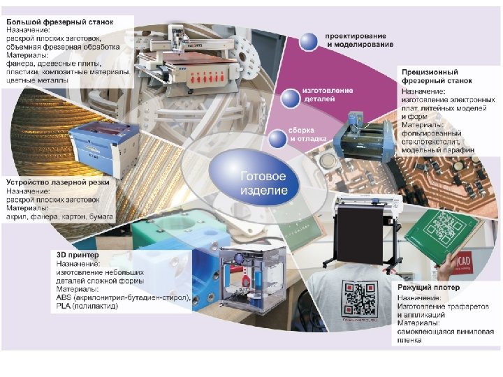 Fab Lab - fabrication laboratory Ø Сообщество людей всему миру, увлеченных техническим творчеством Ø Набор цифрового производственного оборудования и инструмента Ø База знаний по технологиям цифрового производства и проектам в сети Fab Lab Оборудование Лазерный гравер Фрезер ЧПУ 3 D принтер Плоттер Оборудование для работы с электроникой Оргтехника Fab Lab сегодня Ø сеть из более 200 лабораторий по всему миру (Бостон, Барселона, Манчестер, Хельсинки) - реализация сетевых обучающих программ и работа над совместными проектами Ø инкубатор инновационного бизнеса