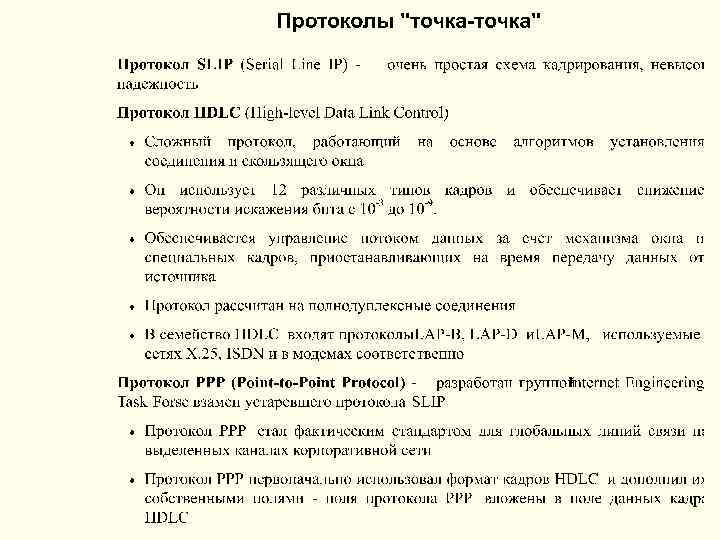 Протоколы точка-точка (Point-to-Point) для работы по выделенным каналам SLIP, HDLC, PPP