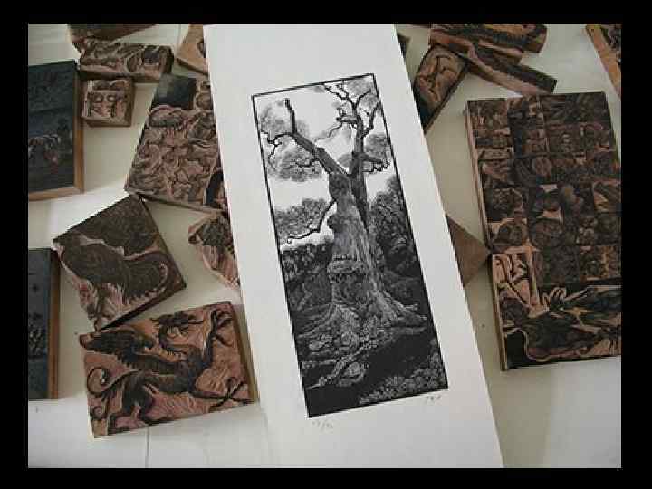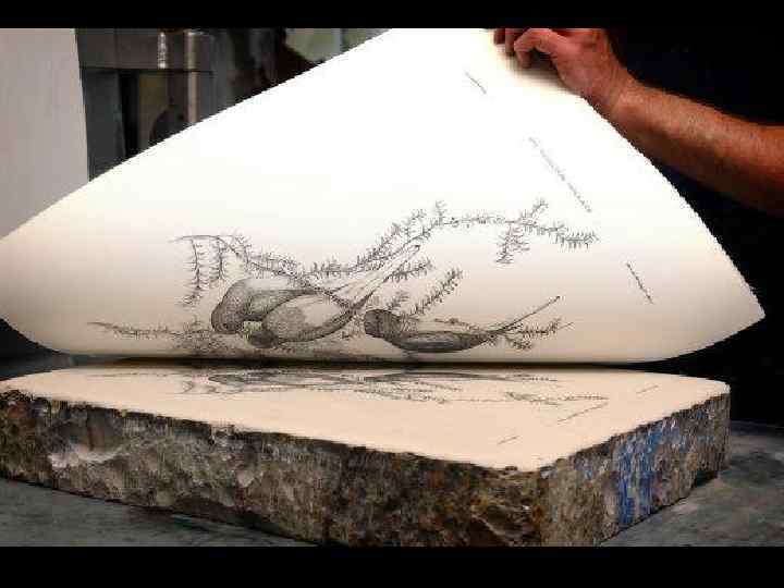 Литография • способ печати, при котором краска под давлением переносится с плоской печатной формы на бумагу. • Печатной формой в литографии служит) поверхность камня (известняка), на которую наносится изображение жирной тушью (кистью или пером) или жирным литографским карандашом. • Вслед за травлением камня кислотой, воздействующей на непокрытую жиром поверхность, рисунок смывают; взамен наносится типографская краска, которая пристаёт лишь к непротравленным частицам камня. Печатание производят на специальном станке.