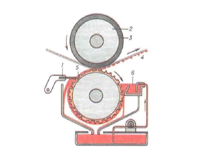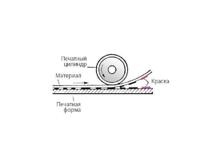 • печатающие элементы углублены по отношению к пробельным элементам. • Краска наносится на всю поверхность печатной формы, а затем стирается так, что остается только в углублениях, соответствующих изображению • Когда к форме прижимается бумага, краска из углублений переходит на нее