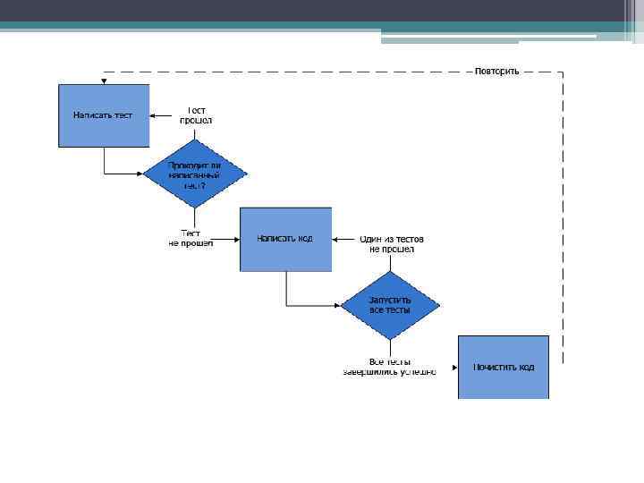 TDD • Разработка через тестирование (англ. testdriven development, TDD) — техника разработки программного обеспечения, которая основывается на повторении очень коротких циклов разработки: сначала пишется тест, покрывающий желаемое изменение, затем пишется код, который позволит пройти тест, и под конец проводится рефакторинг нового кода к соответствующим стандартам.