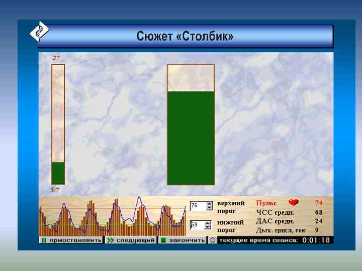 Метод БОС – универсальный механизм активизации резервов здоровья сердца, лёгких, нервной системы – практически всех органов, так как за счет восстановления природного дыхания гармонизирует человека. Первый в мире прибор «БОС-тренировка» , или «кардиосигнализатор» , и был изобретён А. А. Сметанкиным. Кардиосигнализатор не только регистрирует ДАС (дыхательная аритмия сердца), но и позволяет вырабатывать такой тип дыхания, при котором ДАС была бы максимальна. Сегодня модельнизированный прибор входит в состав «тренажера дыхания» . Он позволяет тренировать релаксационнодиафрагмальный (природный) тип дыхания с максимальной ДАС.