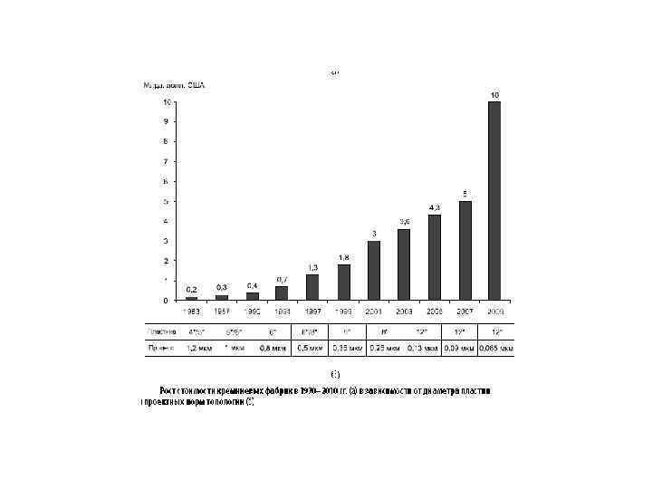 Увеличение диаметра пластин и снижение проектных топологических норм является неотъемлемой частью истории развития полупроводниковой микроэлектроники. За более чем 50 -летнюю историю производство полупроводников прошло путь от пластин диаметром 25 мм до современных фабрик, обрабатывающих кремниевые пластины диаметром 300 мм. К 2020 г. (а, вероятно, и раньше) планируется запуск первой фабрики для пластин диаметром 450 мм. Одновременно с этим происходит постоянное снижение проектных норм топологии, достигшее значений 14 нм.