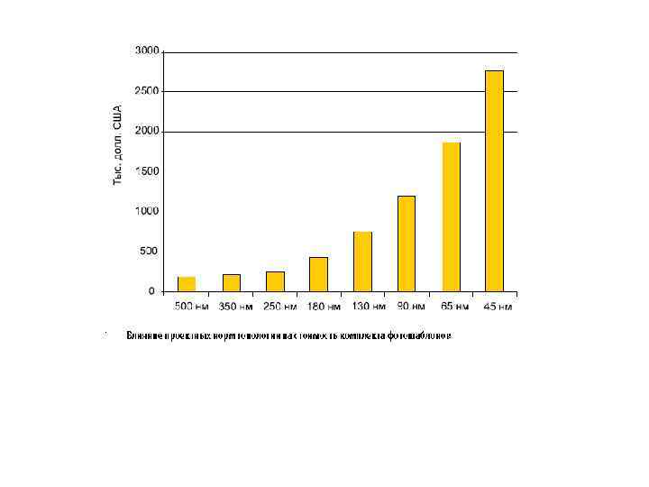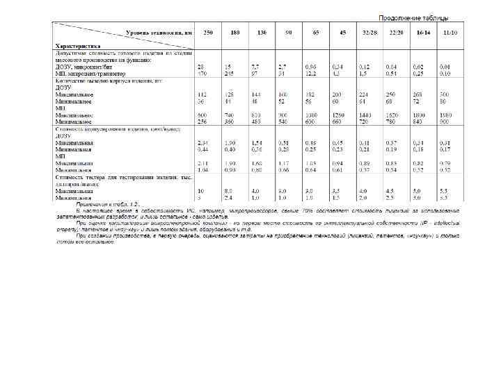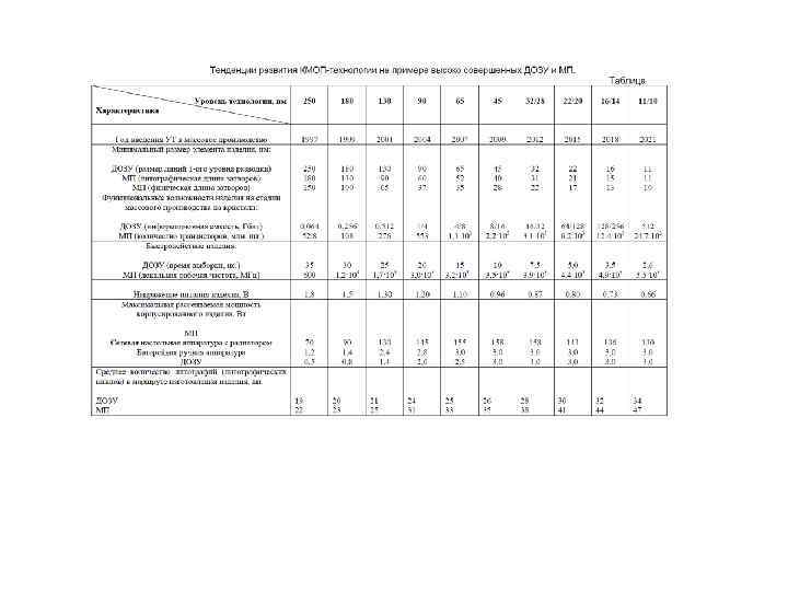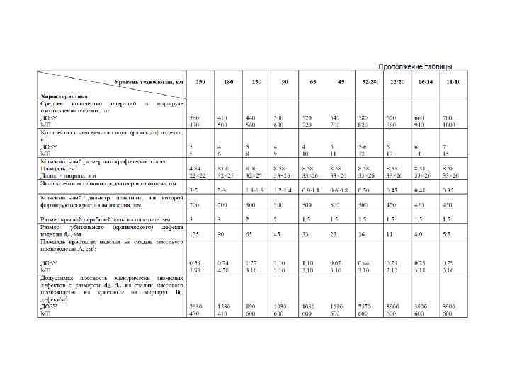 Основным параметром технологии является минимальная технологическая (топологическая, проектная) норма (technology node, feature size). Говоря о проектной норме, обычно имеют в виду минимальный для данной технологии характеристический размер. Уровень технологии определяется минимально возможной топологической нормой, т. е. минимальным размером элемента или зазора в периодических структурах с минимальным периодом (с максимальной плотностью упаковки). Lmin= ½ pitch (шаг), который в настоящее время определяется по первому уровню разводки. Длина затвора МОП транзистора приблизительно в 1. 5… 2 раза меньше технологической нормы. Изменение технологической нормы идет по поколениям, с приблизительно одинаковым масштабным множителем L. Соответствующий ряд параметров технологических норм исторически имеет следующий вид: 0. 5 мкм. . 0. 35. . 0. 25. . 0. 18. . 0. 13. . ( 130 нм). . 90. . 60. . 45. . 32 нм… Переход к следующему поколению соответствует приблизительно увеличению степени интеграции в 2 раза.