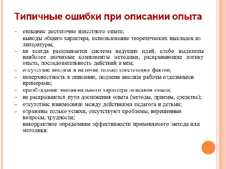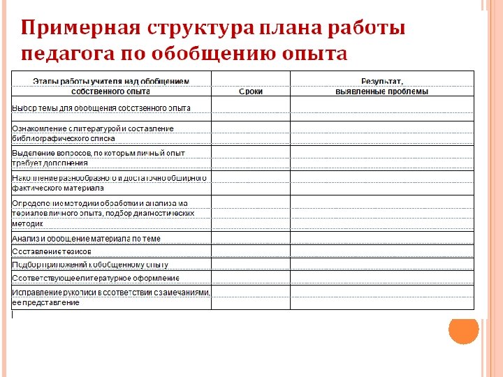 ВАЖНО! Обобщению и описанию подлежит система или отдельные компоненты опыта педагога, которые стабильно дают положительные результаты.