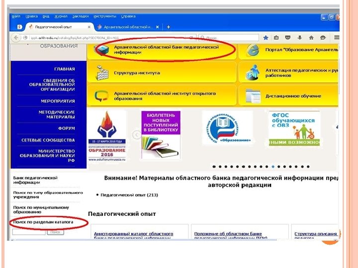БАНК ПЕДАГОГИЧЕСКОЙ ИНФОРМАЦИИ http: //iop. arkh-edu. ru/ http: //ippk. arkhedu. ru/catalog/bpi/mo_detail. php? MO=2896