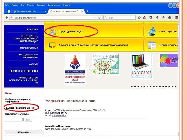 ОБРАЗОВАТЕЛЬНЫЕ САЙТЫ минобрнауки. рф – сайт Министерства образования и науки Российской Федерации www. arkh-edu. ru - Портал «Образование Архангельской области» www. ippk. arkh-edu. ru – сайт Архангельского областного института переподготовки и повышения квалификации работников образования