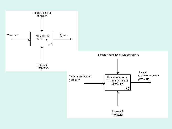 Декомпозиция • Разбиение сложного процесса на составляющие его функции. • Позволяет постепенно и структуированно предствлять модель системы в виде иерархической структуры отдельных диаграмм. • Контекстная диаграмма – представление системы как единого целого – одного функционального блока. Обозначается А-0.