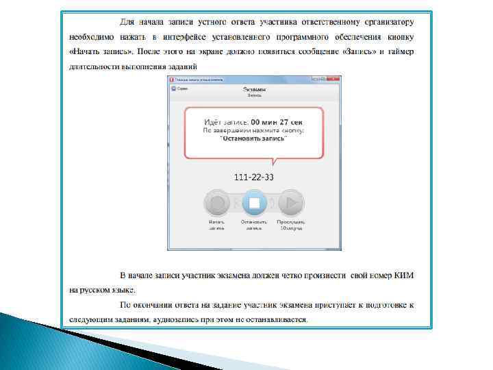 6. Не предусмотрено присутствие экзаменатора собеседника. 7. При осуществлении записи используется специализированное программное обеспечение. 8. Обеспечение экзаменационными материалами: письменная и устная части экзамена не связаны друг с другом. 9. Экзаменационные материалы для устной части включают: - доставочные пакеты с индивидуальными комплектами, содержащими бланк регистрации и номер КИМ; - доставочные пакеты с КИМ.
