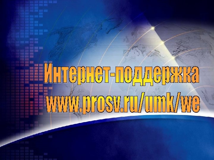 Образовательная среда УМК Электронные компоненты 1. Интернет-поддержка www. prosv. ru/umk/we 2. Электронные приложения к УМК (CD) 3. Аудиоприложение (CD, MP 3 ) 4. Методический портфель (CD) 5. Серия учебных фильмов по коммуникативной технологии иноязычного образования (DVD) 6. Дистанционные сетевые курсы повышения квалификации (Интернет-школа, «Просвещение. ru» )