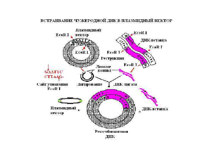 Для клонирования ДНК in vivo нужно: • ДНК-вставка (ДНК-мишень, ДНКинтереса); • ДНК-вектор (генетический вектор клонирования); • клетка-хозяин; • набор ферментов-инструментов и вспомогательных олигонуклеотидов