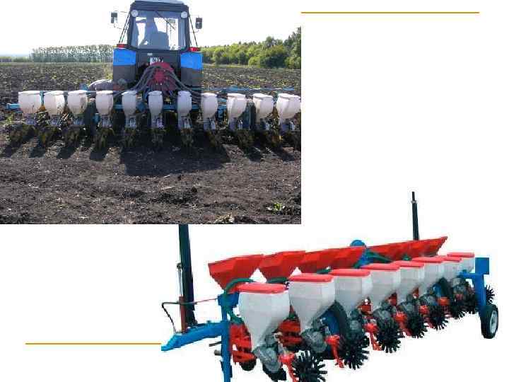 Сівба та догляд за посівами n Основний спосіб сівби - пунктирний з шириною міжрядь 45 см. n Дуже важливо дотриматись прямолінійності сівби. Використовують сівалки ССТ-12 Б, ССТ-12 В, ССТ -18 В, пневматичні сівалки точного висіву СУПК 12 А, УПС-12, Мультикорн.