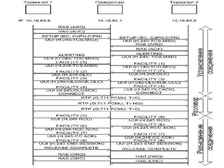 Алгоритм установления соединения через GK GK EP ARQ (dest X) ACF (IPY) Setup EP X H. 225 RAS H. 225 Call Signalling Call Proceeding ARQ ACF Alerting Connect H. 245 Call Control
