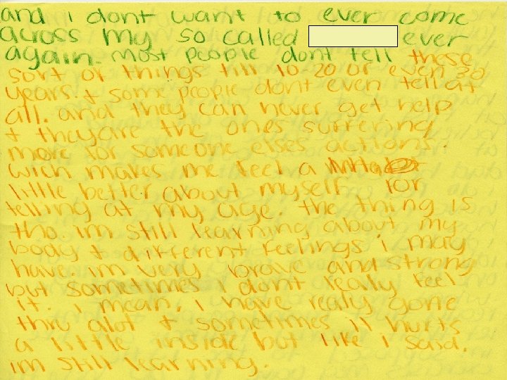 Encountered Problems • Client felt she was not believed at first • Multiple loss in life • Support framework not strong HOW WOULD YOU HANDLE IT?
