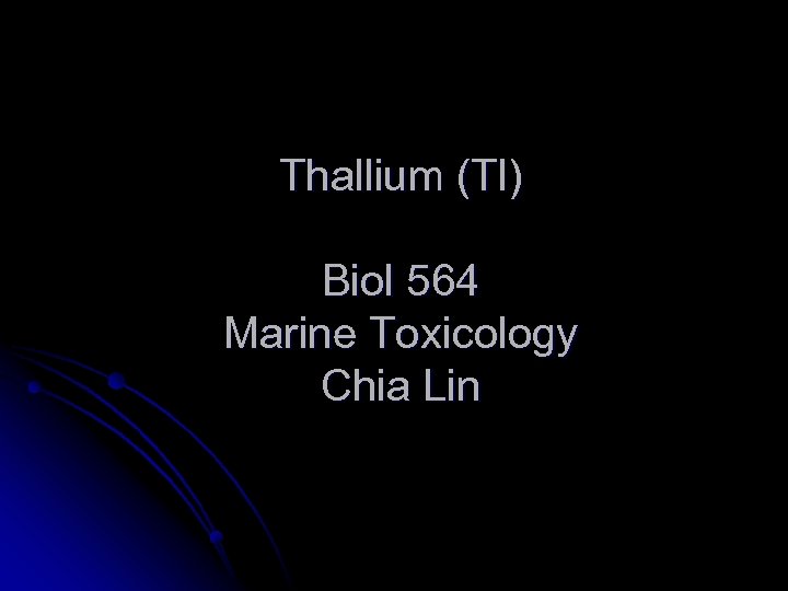 Thallium (Tl) Biol 564 Marine Toxicology Chia Lin