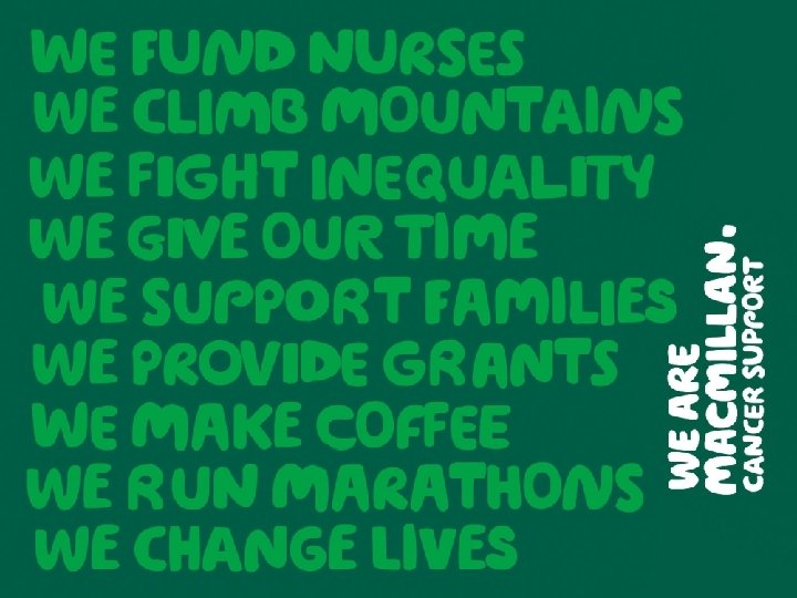 Summary • Patients should be offered stratified follow-up pathways • Development of local specialist HNC teams • Increase rehabilitation staff at cancer units • Development of the pay band 4 role within cancer centres • Increase restorative dentistry services • Better access to physiotherapy, lymphoedema and OT services • Develop and implement a programme of new learning opportunities and ensure protected time