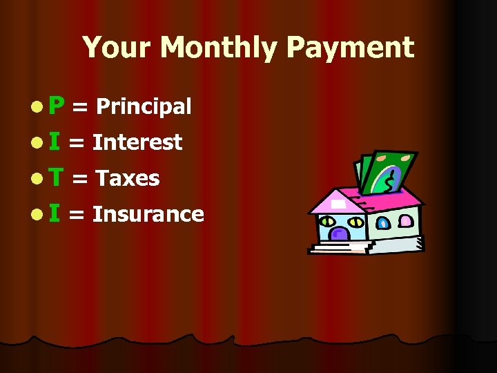 Your Monthly Payment l P = Principal l I = Interest l T = Taxes l I = Insurance