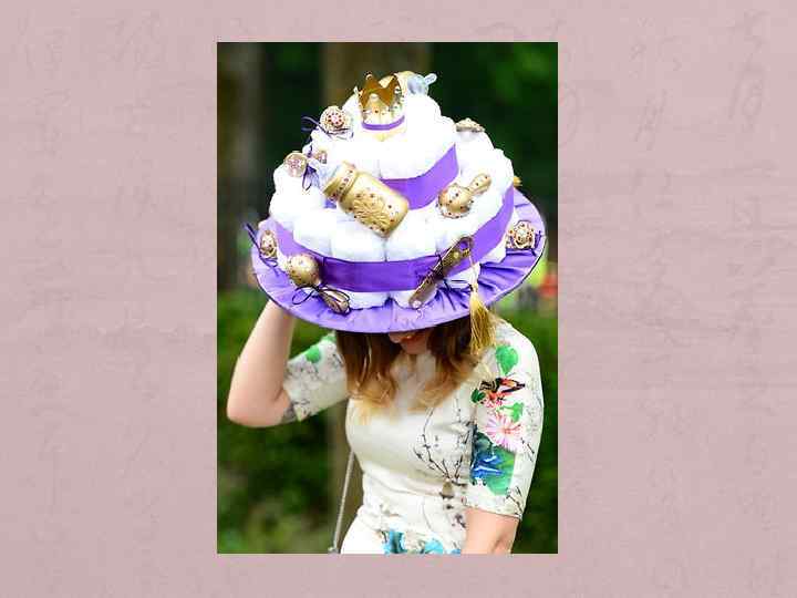 THE WHOLE WORLD EAGERLY AWAITS THE BIRTH OF FIRST CHILD KATE MIDDLETON AND PRINCE WILLIAM, AND ONE OF THE GUESTS OF THE RACE OF ROYAL ASCOT EVEN PREPARED FOR A BABY GIFT! SHE APPEARED IN THE HAT AND THE CAKE OUT OF DIAPERS, DECORATED WITH A GOLDEN CROWN, PACIFIERS AND RATTLES. THESE ACCESSORIES ALSO WERE INLAID WITH WHITE AND RED STONES IMITATING PRECIOUS – ALL THE BEST FOR THE ROYAL GRANDSON OR GRANDDAUGHTER! GUEST NOT ONLY SURPRISED EVERYONE WITH ITS UNUSUAL HEAD-DRESS, BUT ALSO PROVED THAT A HAT CAN BE NOT ONLY ORIGINAL, BUT ALSO PRACTICAL.