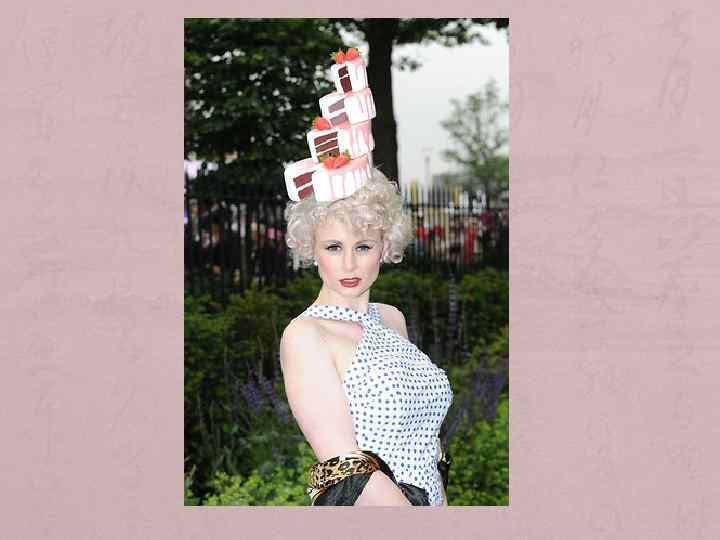 DESPITE THE FACT THAT FLORAL MOTIFS ARE CONSIDERED TO BE THE TRADITIONAL TREND OF HATS AT THE RACES IN ASCOT, CAKES WERE EQUALLY POPULAR THIS YEAR. THE GIRL WHO CAME TO THE EVENT IN THE IMAGE OF MARILYN MONROE, SHOWED EVERYONE MY "DESSERT" HAT IN THE FORM OF A FOUR-TIERED CHOCOLATE CAKE, DECORATED WITH ICING AND STRAWBERRIES.