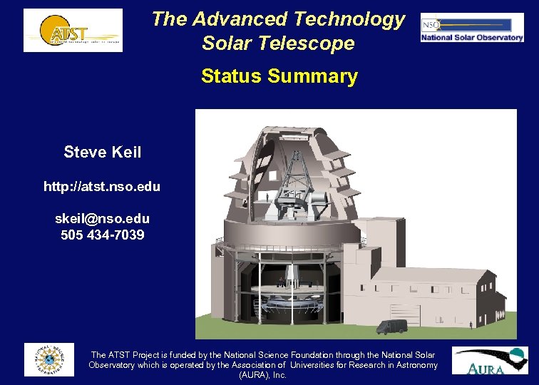 The Advanced Technology Solar Telescope Status Summary Steve Keil http: //atst. nso. edu skeil@nso. edu 505 434 -7039 The ATST Project is funded by the National Science Foundation through the National Solar Observatory which is operated by the Association of Universities for Research in Astronomy (AURA), Inc.