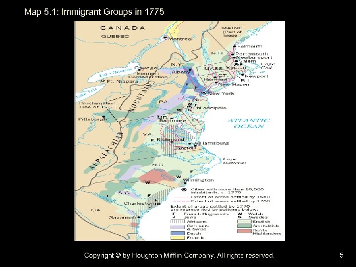 Map 5. 1: Immigrant Groups in 1775 Copyright © by Houghton Mifflin Company. All rights reserved. 5