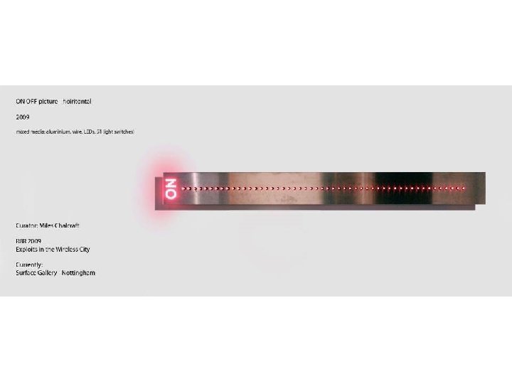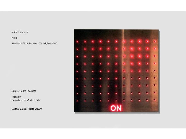 The exhibition pieces • Two switch pictures • Conditioning energy from OFF to ON (between states) • User conditioning – contemplation between states (Consumption and ecomony) Switches and attractors