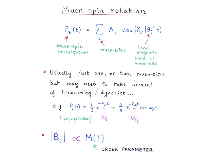 Uniformly weakly magnetic Non-magnetic, with strongly magnetic impurities or Susceptibility gives average information and therefore can give the same response for the situations sketched above (hence many false claims of room temperature organic ferromagnetism…) m. SR gives local information and therefore can distinguish between these two situations.