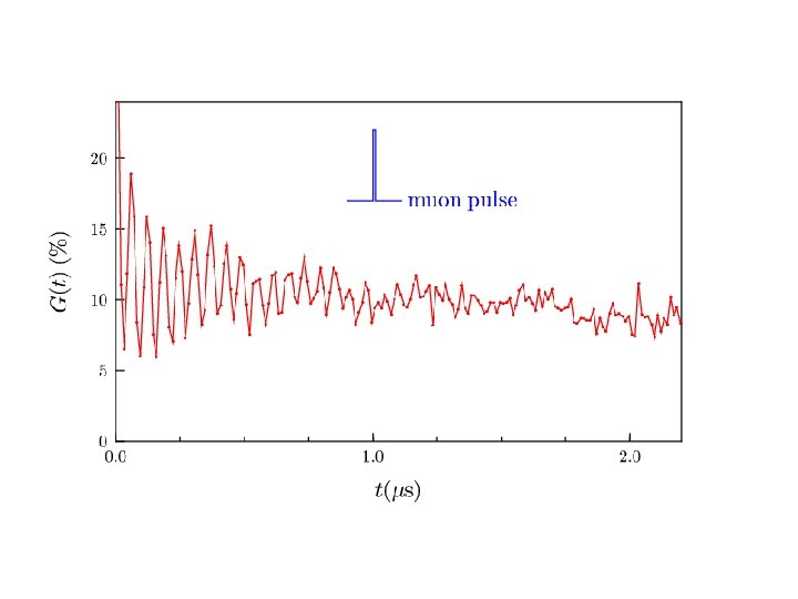 In the presence of magnetic order, muons sense the internal magnetic field in a material, measured at the muon stopping site. The muon spin precession frequency, ωμ=2πνμ, is given by ωμ=γμBμ. This allows us to follow the temperature dependence of the magnetic order.