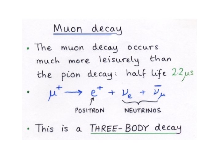 Muon decays into a positron: MUON POSITRON NEUTRINOS Positron decay is asymmetric with respect to the initial muon-spin polarization because of parity violation (weak interaction) (see S. J. Blundell, Contemp. Phys. 40, 175 (1999))