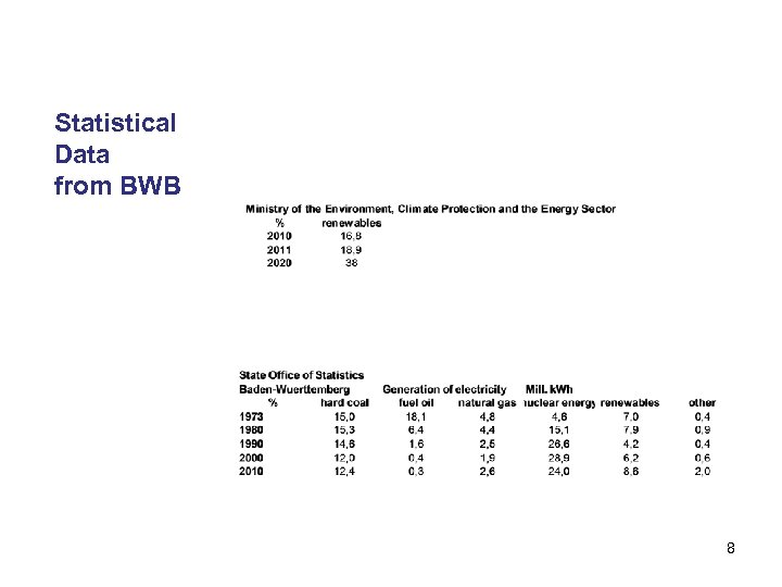 Statistical Data from BWB 8