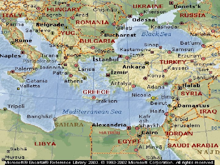 Dead Sea § Fed by the holly river ( Jordan River ) § Bounded on the west by the West Bank and Israel and on the east by Jordan. § The surface of the Dead Sea, 408 m (1, 340 ft) below sea level, it is the lowest water surface on earth. § 55 km long by 17. 5 km. § Moab mountains on the east and Palestinean – Israeli mountains on the west.