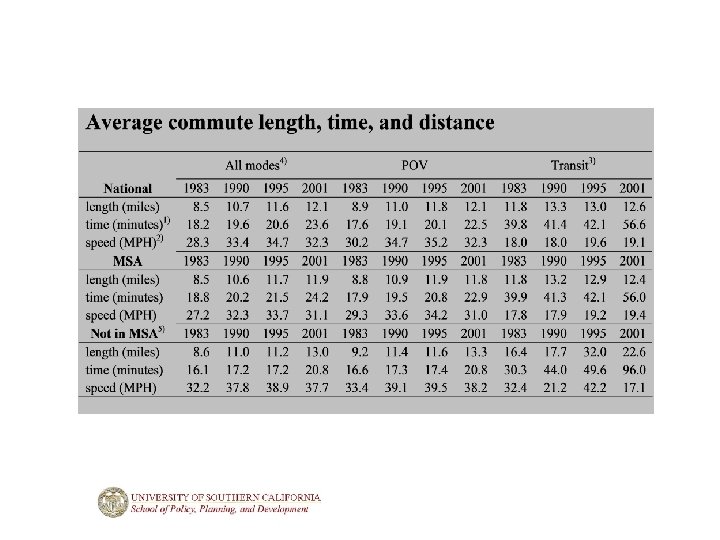 • How to explain recent commute time increases (13. 3%) in US metropolitan areas in the latter half of the 1990 s – even though commute times had been remarkably stable through previous decades. • Substantial income growth and subsequent increases in vehicle ownership (Gordon et al. , 2004). More income, more cars, more errands by car – but few more roads. 1985 -2006 VMT grew 100%, but lanemiles grew by 5% http: //www. fhwa. dot. gov/policyinformation/pubs/pl 0802 1/index. cfm