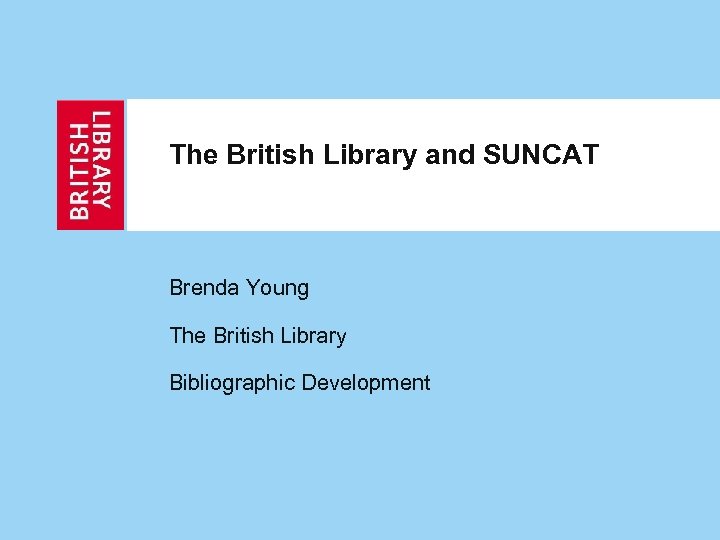 The British Library and SUNCAT Brenda Young The British Library Bibliographic Development