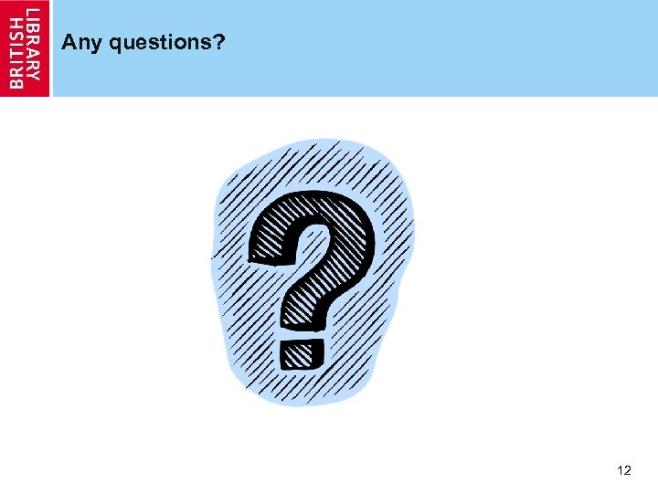 ISSN requests n We can only fulfill requests for ISSN for UK titles n We expect requesting library to make every effort to find out if an ISSN already exists n We need evidence of the publication; photocopies are acceptable n We need as much information as possible n Requests from SUNCAT contributors will be dealt with by the SUNCAT Team n Guidelines are to be posted on the SUNCAT web pages 11