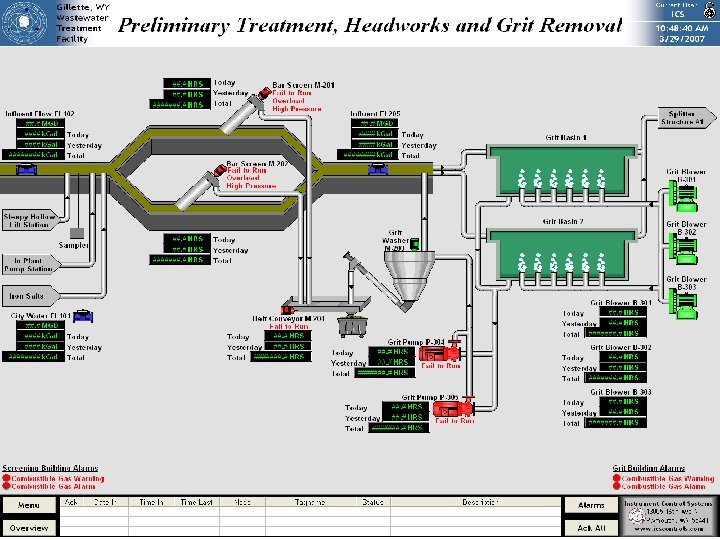 Grit Unit Automation l Alarm annunciator l Pilots lights l Pushbuttons l Methane gas detection l Screening equipment monitoring l Grit equipment monitoring l Primary clarifiers monitoring March 31 st and April 1 st, 2009 Mile High Industrial and Automation Conference