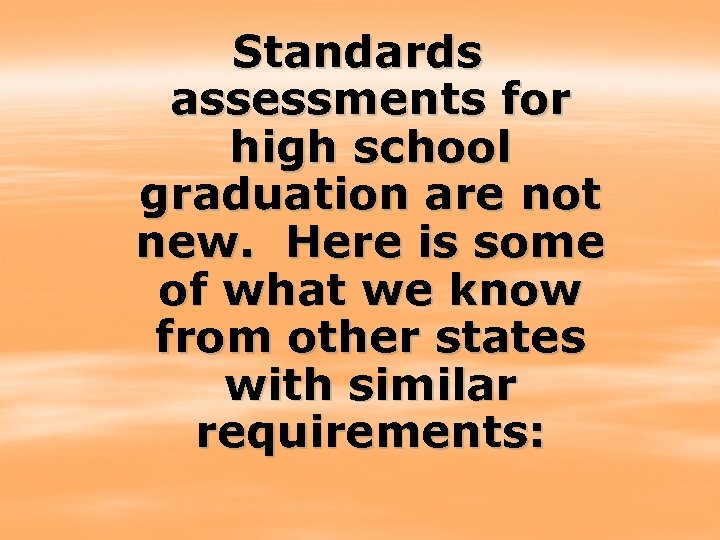 Standards assessments for high school graduation are not new. Here is some of what we know from other states with similar requirements: