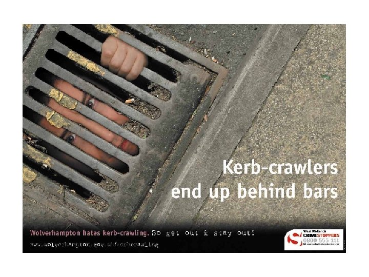 Coordinated Prostitution Strategy: Tackling Demand o o o Enforcement of existing laws for kerbcrawling Addressing concerns from communities Informal warning / court diversion / prosecution Crackdowns, zero tolerance decoys, supporting naming and shaming, media coverage, driving licenses revoked, fines, rehabilitation programmes High profile naming and shaming – Aberdeen / Leeds: impact on families? ? 2008 – another review of ‘tackling demand’ with view to criminalising men who buy
