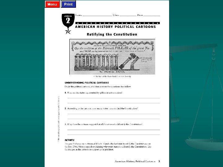 Why were the Federalists Successful in Ratification? § § § Feds better organized/more skilled politicians Offered a positive future with new Constitution/Anti-feds. had no alternative. Feds better represented in electing bodies/poor could not vote against ratification Washington and Franklin gave the new government credibility A Bill of Rights would eventually be added to protect the rights of all/avoid the central government from crushing liberties