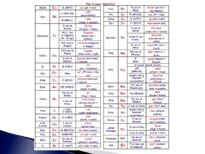 Shere ne Maria: tee etcherompi ethnesos: thietasmisi nan: emevnoti piloghos. Shere ne Maria: khen oshere efowab: Shere ne Maria: ethmav emfiethowab. Shere ni Sherobim: Shere ni Seraphim: Shere nitaghma tiro: eneporanion. Shere Mikhail: pinishti enarshi angelos: Shere Ghabriel: pisotp empifai-shennofi. Shere Yoannis: pinishti emepro dromos: Shere pioweeb epsengenees en Emanoweel.