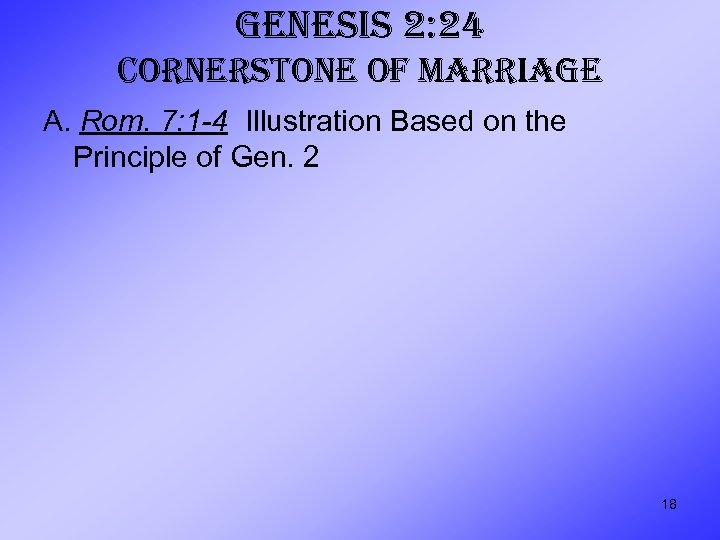 GENESIS 2: 24 CORNERSTONE OF MARRIAGE A. Rom. 7: 1 -4 Illustration Based on the Principle of Gen. 2 18