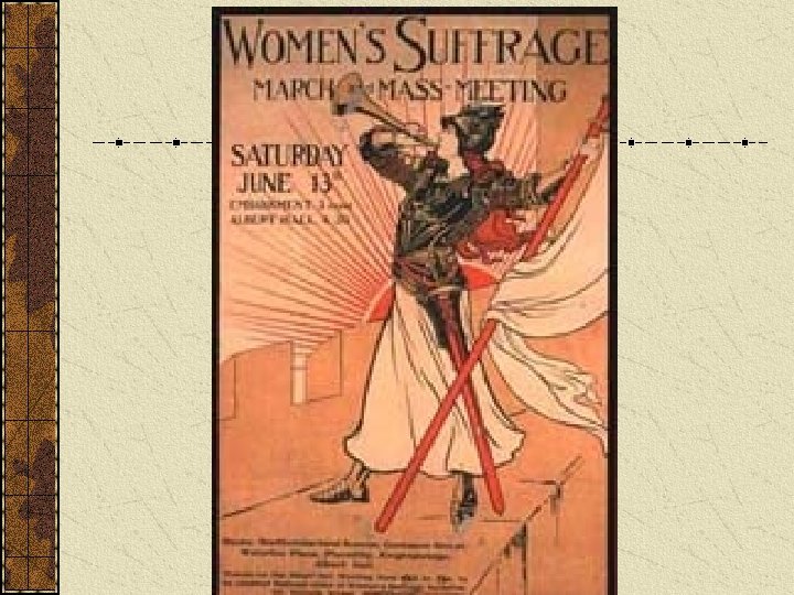 Women and Politics Pankhurst encouraged destruction of property to highlight violence done to women by denying them the vote Votes: 1918 England 1918 Germany 1920 America 1945 France