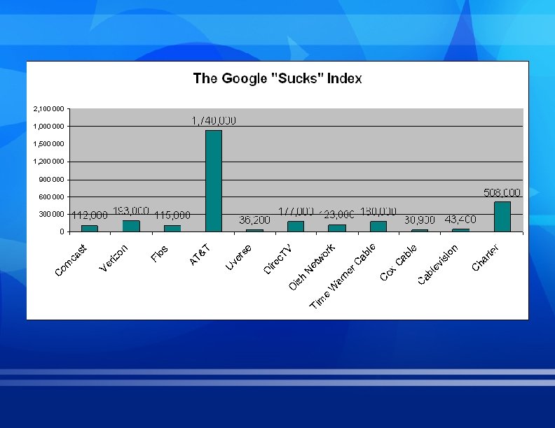 Buzz Strategy Google search results remain more positive than negative as of December 31, 2009; You. Tube results are 50%50%. December 2009 2008 % Positive Results (Comcast-owned properties, positive news) % Negative Results (negative reviews/news, critical blog posts) Google search for "Comcast" 90% 70% 10% 30% Google search for “Comcast service" 70% 50% 30% 50% You. Tube search for “Comcast" 50% 30% 50% 70% Source/Search Term 20