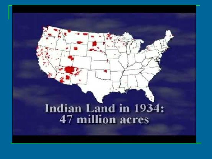 Shrinking Indian Lands n Congress saw allotment as the key to all other programs, and it remained at the center of federal Indian policy until 1934. q In all, over 41 million acres were allotted to Indians under a q q q variety of laws and treaties. One conse quence was that the land base of Indian tribes declined from 138 million acres in 1887 to 34, 287, 336 acres in 1934, including additions to some reservations in the Southwest. Moreover, another 17. 8 million acres of land allotted to individuals was still under federal supervision. Allotments no longer supervised by the federal government had either been sold or the owners no longer had restrictions on their land. 9