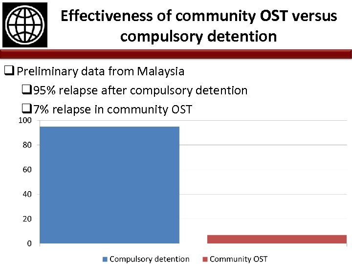 Effectiveness of community OST versus compulsory detention q Preliminary data from Malaysia q 95% relapse after compulsory detention q 7% relapse in community OST